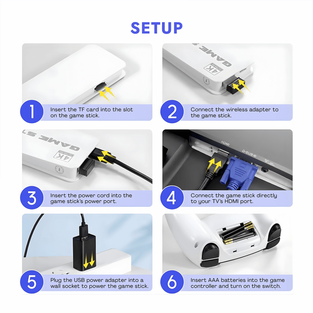 No downloads, no installations, and no updates. You plug the device into your TV, connect power, and start playing within seconds.